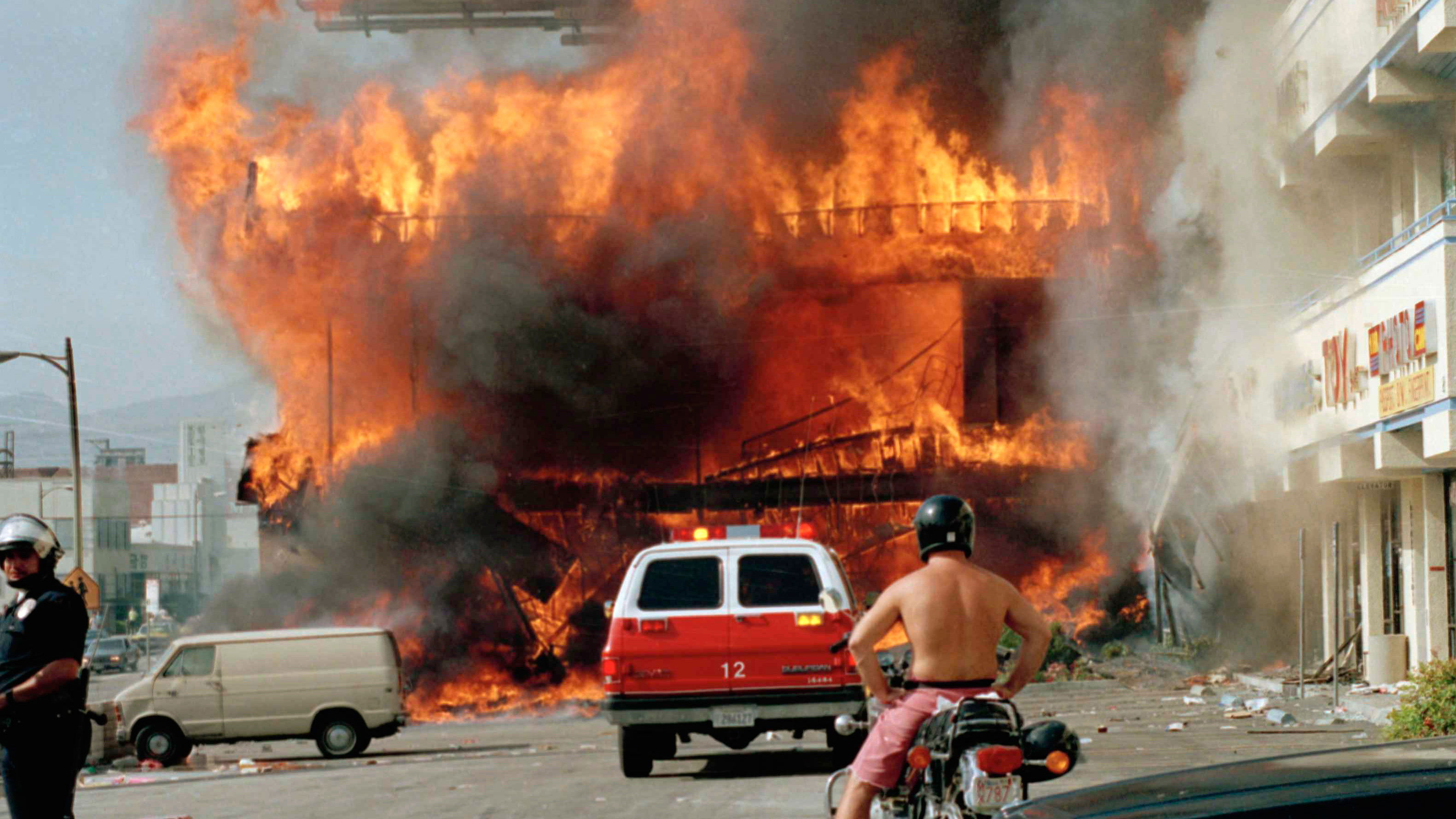 1991 tavaszán egy Rodney King nevű színes bőrű motorost egy autós üldözés után brutálisan megvert négy fehér bőrű rendőr Los Angeles-ben. Egy közeli ház erkélyéről valaki videóra vette az ütlegelést, így a rendőröket nem sokkal később bíróság állították – ám ártatlannak ítéltettek. Az ítélet nyilvánosságra kerülése után az amerikai történelem egyik legsúlyosabb zavargása tört ki a városban…